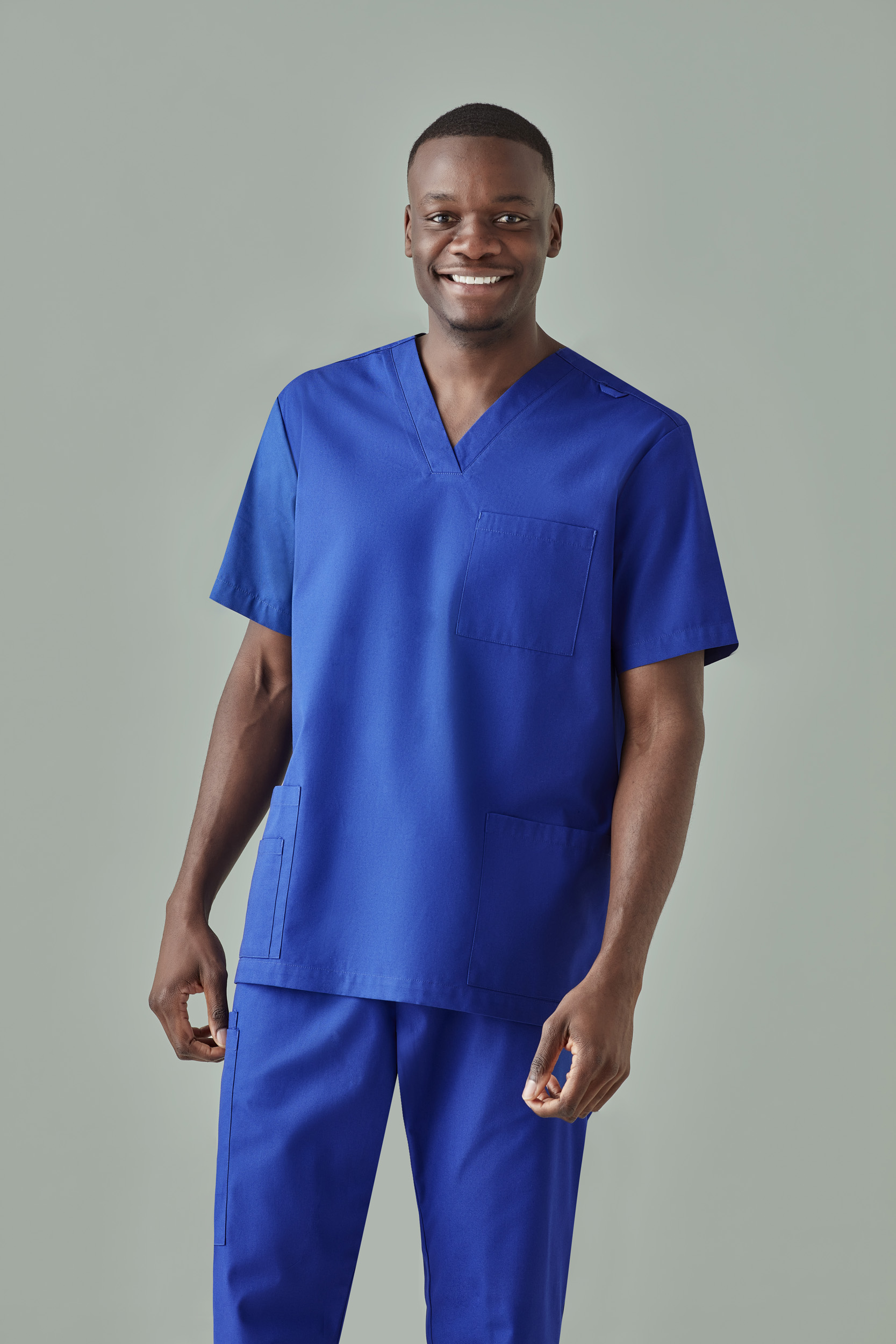 - Traditional V-neck style, slightly tapered to eliminate boxy scrub top look