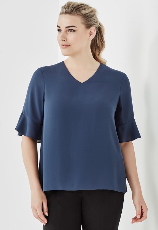 - Soft fluted sleeves with seam designed to sit above elbow