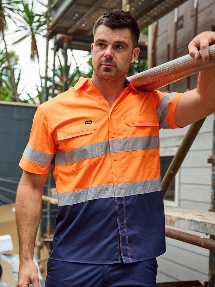 - Bisley X Airflow™ ventilation at multiple heat stress areas, including laser perforated self fabric panels on side of body and underarms